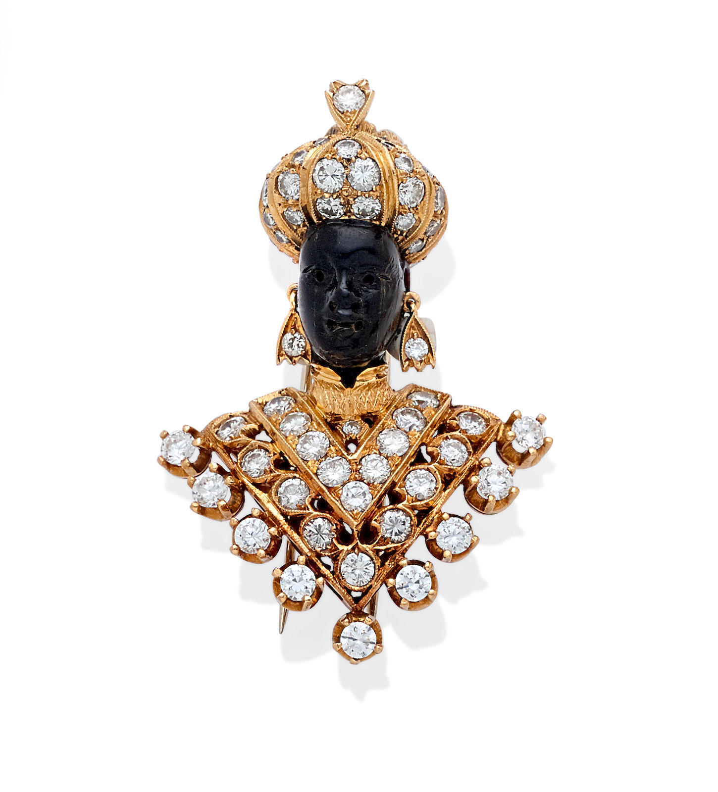 Nardi is a Venetian jeweller famous for his blackamoor or “Moretti” brooches. Carved from ebony or sardonyx, these brooches depict the head and shoulders of a turbaned “Moorish” male—the intended reference is often to Othello, the Moor of Venice, or to the valiant, warlike Hannibal. Ref: Antique Jewelry UniversityThe firm has been in operation since the 1920’s and is family run. Below are some examples of Nardi’s brooches.
