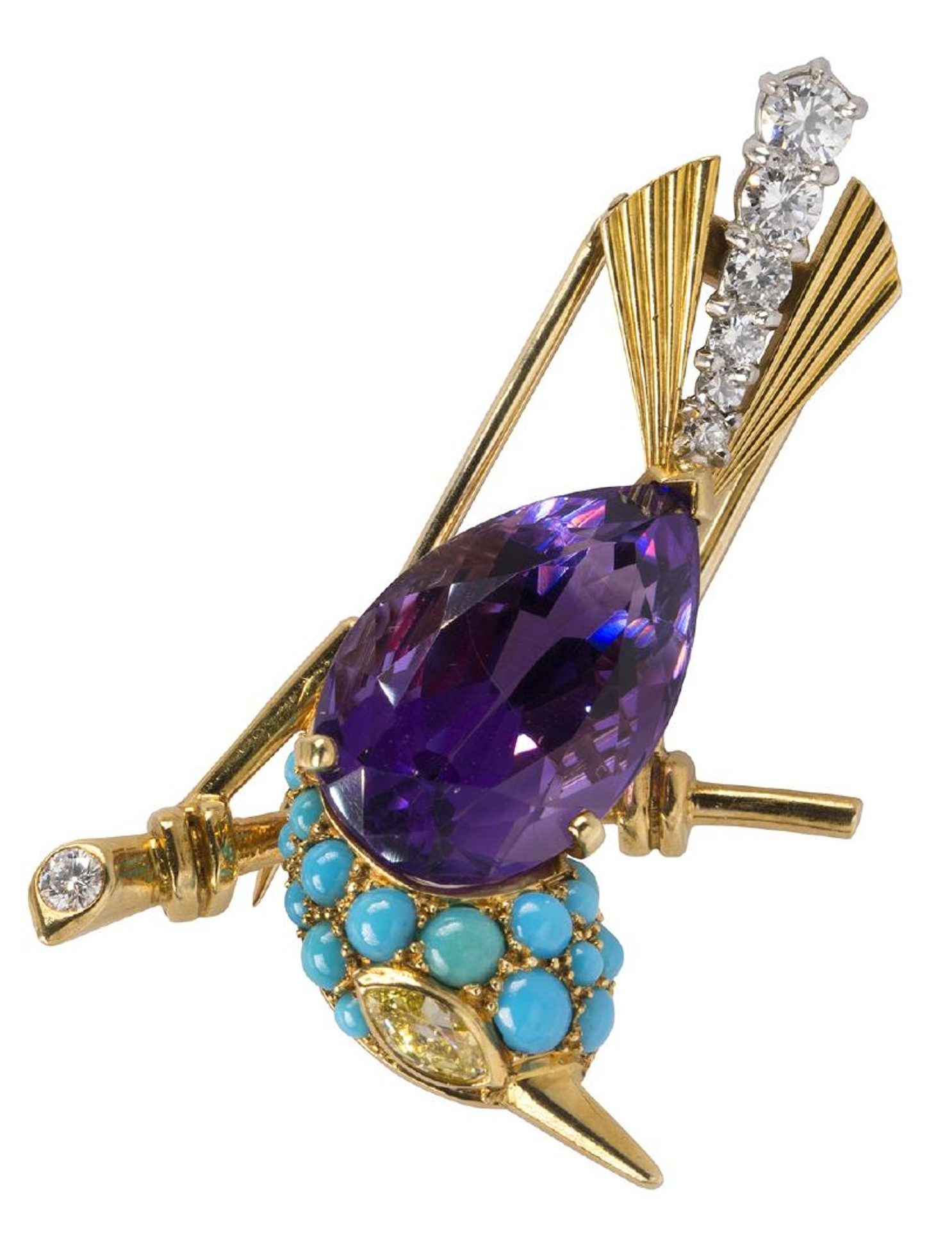 A diamond brooch, Mellerio EMERALD PIN, RUBY AND DIAMONDS, BY MELLERIO Gold, Platinum, Abalone Shell and Diamond Brooch, Mellerio Mellerio Dits Meller 18K Gold Pink Tourmaline Brooch. Jadeite jade and ruby brooch, Mellerio Mellerio Makers Mark