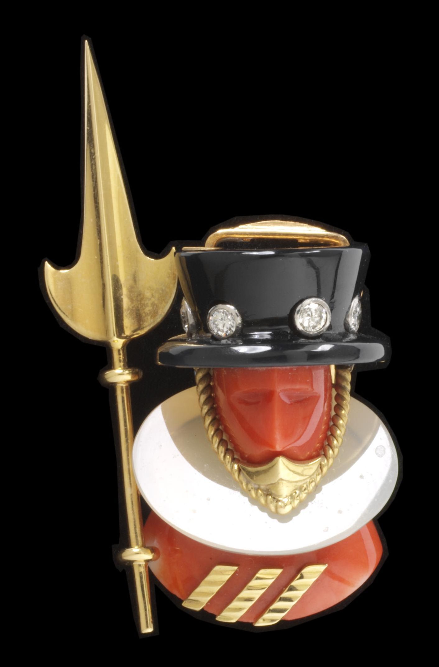 Nardi is a Venetian jeweller famous for his blackamoor or “Moretti” brooches. Carved from ebony or sardonyx, these brooches depict the head and shoulders of a turbaned “Moorish” male—the intended reference is often to Othello, the Moor of Venice, or to the valiant, warlike Hannibal. Ref: Antique Jewelry UniversityThe firm has been in operation since the 1920’s and is family run. Below are some examples of Nardi’s brooches.