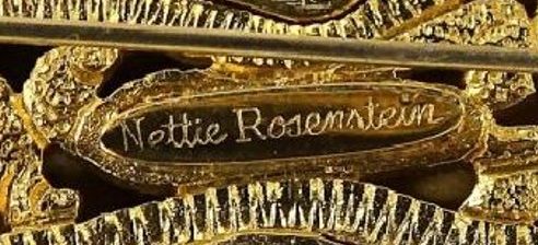 Nettie Rosenstein Sterling Gilt Flower Brooch Nettie Rosenstein Gold Tone Geisha Brooch Vintage Nettie Rosenstein Gold Tone Rhinestone Insect Brooch Rhinestone Trembler Brooch. Nettie Rosenstein Vintage gold tone and bead brooch. Marked Nettie Rosenstein. Nettie Rosenstein Makers Mark